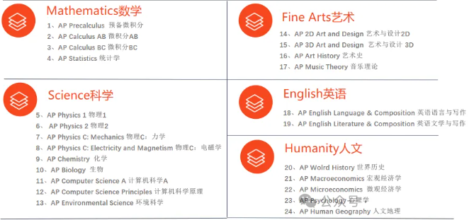 課程涵蓋ESL、TOEFL、ACT、24門AP課程以及三門二外:西班牙語、法語、德語,滿足不同學(xué)生的學(xué)習(xí)需求,更是美國大學(xué)理事會認證的【AP學(xué)校】。