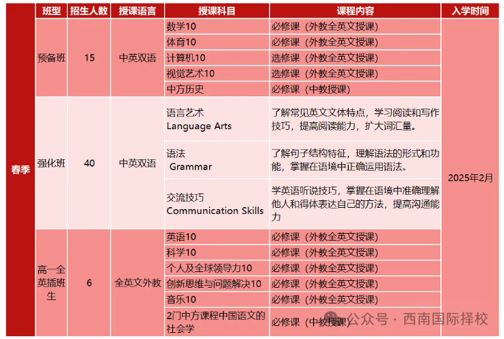 這種課程設(shè)置有助于學(xué)生在短時(shí)間內(nèi)快速提升英語能力,適應(yīng)國(guó)際高中的學(xué)習(xí)環(huán)境,為未來的學(xué)術(shù)和職業(yè)發(fā)展打下堅(jiān)實(shí)基礎(chǔ)。