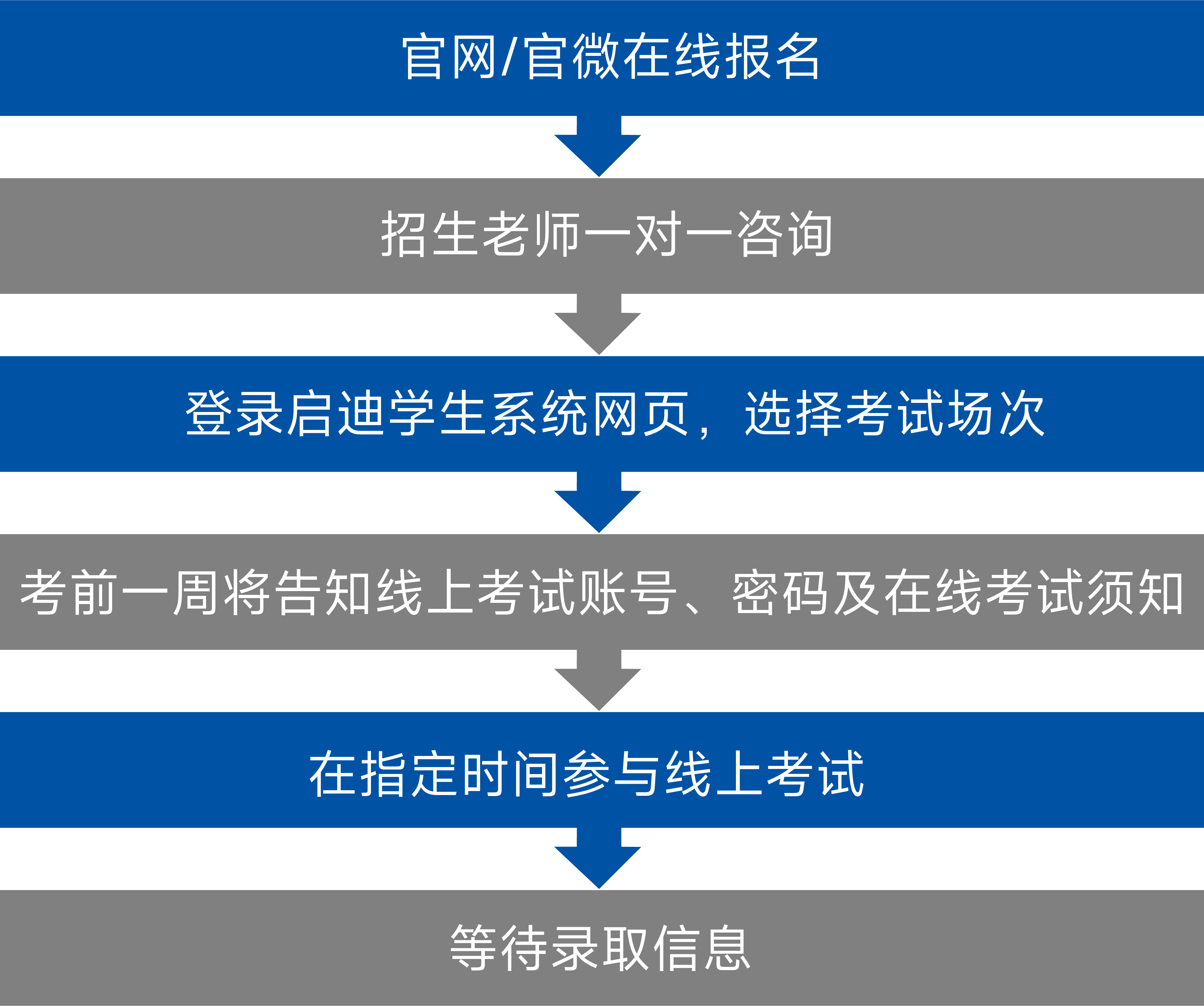 筆試結(jié)束后,綜合成績排名靠前的考生會(huì)收到面試邀請,在統(tǒng)一完成一對一全英文面試之后,光華啟迪招生辦會(huì)參照各位考生的筆試和面試成績,以電子郵件形式通知大家關(guān)于本次入學(xué)測評的最終錄取結(jié)果。