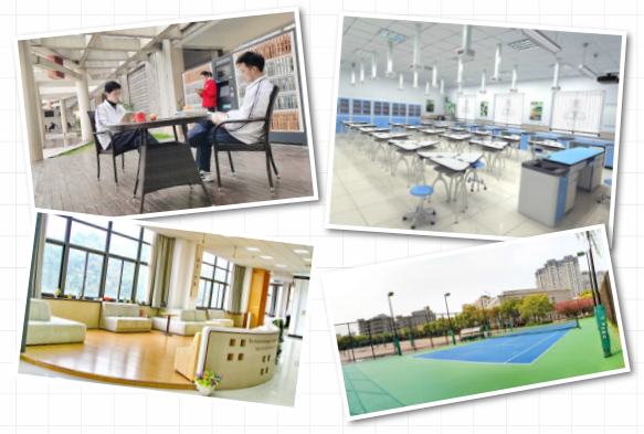 所有教室均配備一體機教學、電子班牌、書包柜。智能借書柜、最美校園圖書館隨時提供知識援助,生物創新實驗室、歷史學科教室、化學實驗室、天文臺等先進設施設備讓學習充滿樂趣。體育設施配套充裕,現有兩個田徑場(400m標準跑道),籃球(共有9片場地)、網球、羽毛球、乒乓球等場地一應俱全。