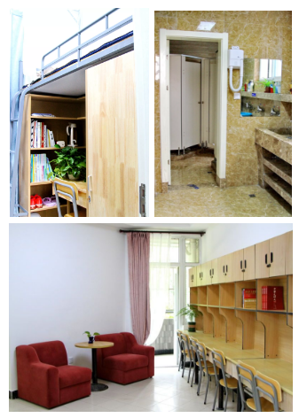 我校是杭城第一所寄宿制示范校,可滿足全體學生住校,已經積累了20年寄宿管理經驗。學生可以自主選擇通校或住校,通校生可參加學校晚自修。學生宿舍為家庭公寓式戶型,客廳與臥室分隔,學習休息互不干擾,干濕區分離,功能強大,有兩人間、三人間、六人間三種格局。所有房間均設有空調、吹風機、直撥電話和獨立衛生間,熱水24小時直供。住宿費為400元/學期。